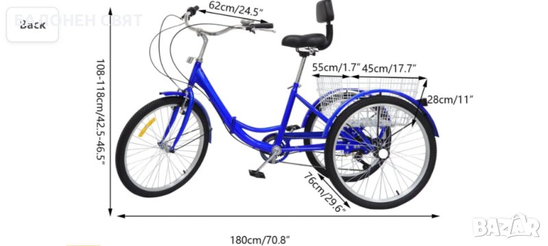 Триколесен Велосипед за използване от всички възрасти: от юноши до възрастни мъже и жени.