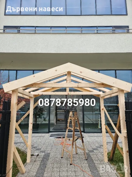 дървени навеси, беседки, барбекюта и гаражи, като целият дървен материал се шлайфа и импенгрира. Гаранция, договор направа на всякакви навеси от дърво, навеси на тераси, гаражни навеси за автомобили, навеси за летни кухни, барбекю и зимни градини от дърво