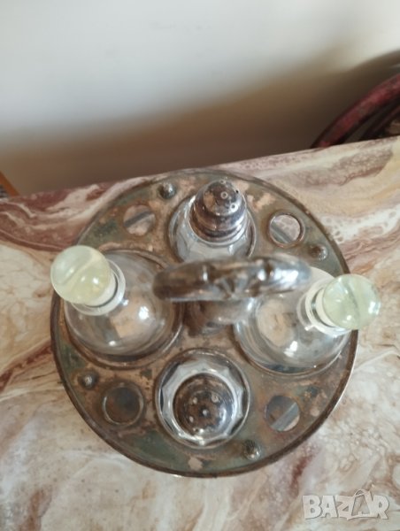 стар оливерник арт деко.височина 32см,диаметър 23см,отвори за шишетата 7см и 6,5см.забележка-на последната снимка.внос от франция.
