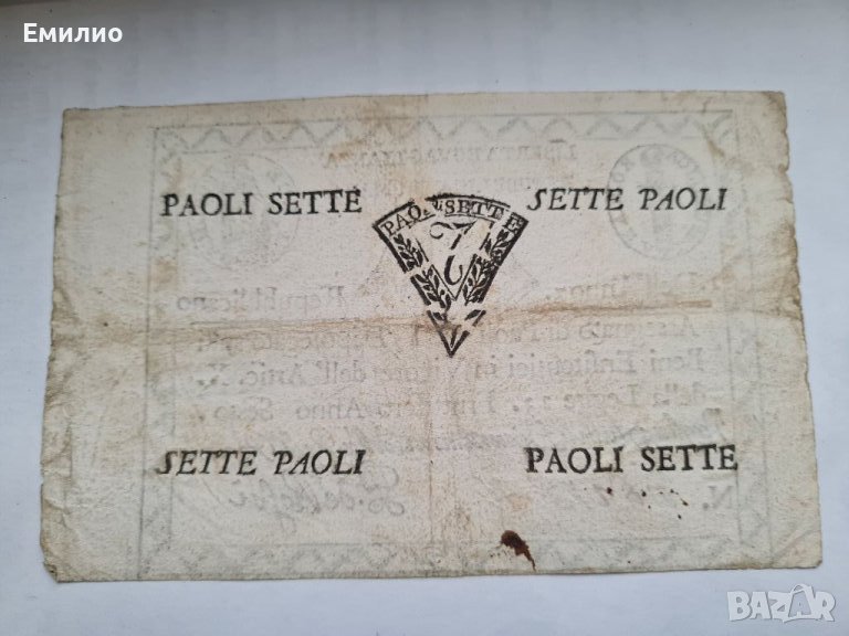 Ватикана. 7 Паоли от 1798 год. Банкнотата е в изключително добро състояние. Направена през 18ти Век.