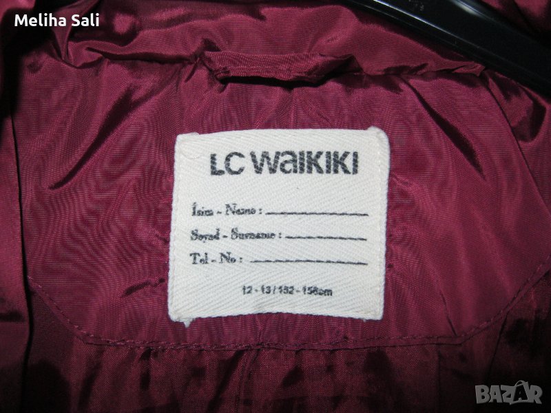 Якето е зимно за момиче на възраст 12-13 години на марката LC WAIKIKI. Носено е, но е доста запазено. Цветът е бордо с много красив блясък. На качулката има и черен пух, който се маха. При интерес мога са напиша мерките на якето.