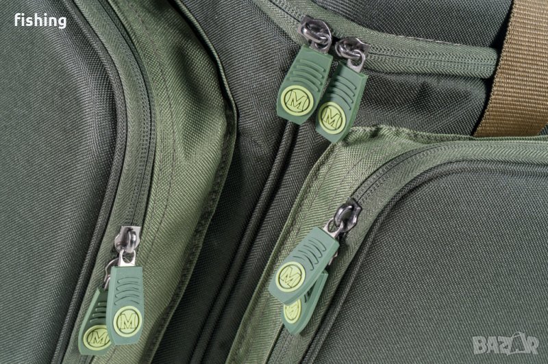 Луксозна и голяма чанта за шаранджийски специалисти с много включени аксесоари. Използваният при изработката материал B-POL600D гарантира издръжливост, лесна поддръжка и е 100% водоустойчив. Специално оформеният твърд капак може да се използва като маса за аксесоари. Краката на тази маса са интегрирани в ъглите на чантата. Добре подплатена презрамка за рамо осигурява удобно транспортиране. Този несесер включва двойна пластмасова кутия за куки, една голяма кутия и три по-малки кутии за аксесоари. Тези артикули идват от новата гама аксесоари Mivardi Carp. Стандартно са включени осем висококачествени контейнера за потапяне с подобрено запечатване.