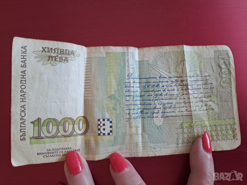Стари български банкноти - 1000 лв от 1997г., 2 лв. от 2005 г. и 2 бр. от 1 лв. от 1974 г. Цена по договаряне. Отговарям на съобщения тук, изпращам с куриер с отстъпка, преглед, или лично предаване в София.