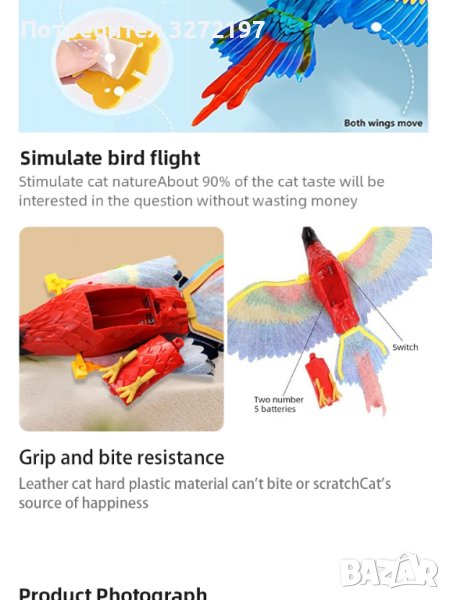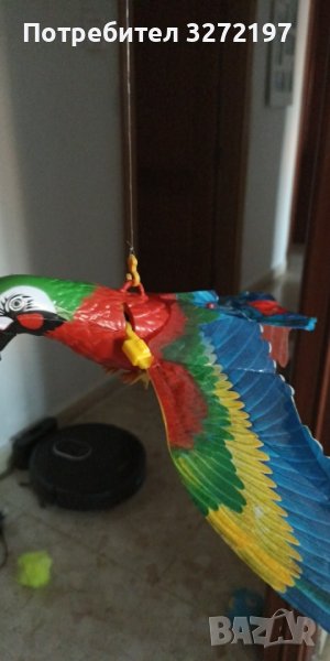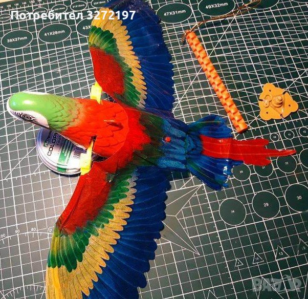 Поставете 2 x AA батерии (не са включени), включете превключвателя и папагалът ще разпери криле и ще полети в кръг с вашето въже.