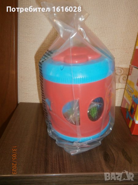 Развива финната муторика и логическото мислене при най-малките,когато се учат да преценят коя фигурка през кой отвор да се пусне,каква форма е и с какъв цвят е.Във външните краища има допълнителни играчки,оранжевото цвете се натиска на вътре,а малките рингчета се местят като на сметало за броене.