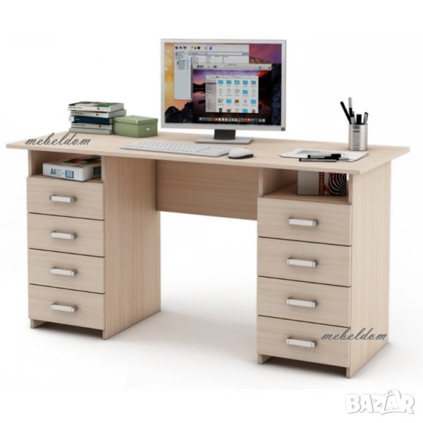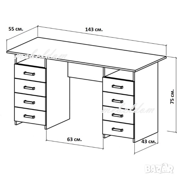 Бюро 143см. със 8 чекмеджета(код-1171) поставяне: до стена,бюрото е еднолицево
