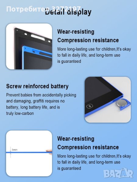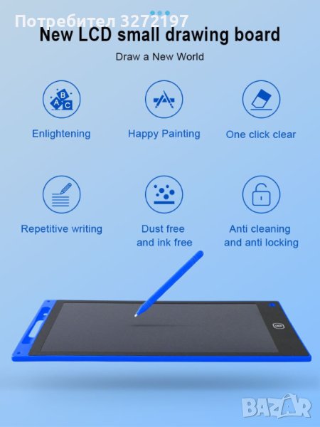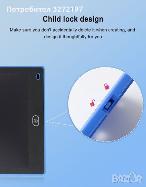 LCD екран за ръкописен текст, рисуване, панелна живопис,чертане и др., заключване против изтриване.