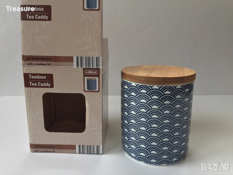 Кутия за чай от порцелан с бамбуков капак → Обява 40954000