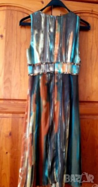 Роклята е облечена веднъж за час. Все едно нова. Закупена е от мол Варна за 140 лв. Номер 42. Гръдна 83 см, като е измерено от мишница до мишница, а отпред на бюста има още издаване напред за гърдите, което няма как да се измери. Талия 80 см. Дължина 98.5 см. С хастар.