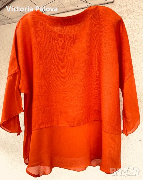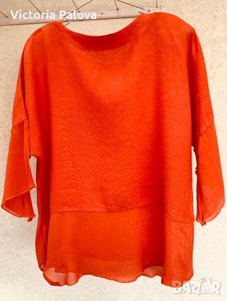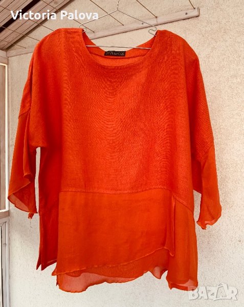 Скъпа маркова блуза-лен ,one size,рамо без шев-88см,ГО-70см,дължина-75см,подплънки.материята е прекрасна,дишащ гладък лен,”красотите”по ръкавите и долу са вискоза.