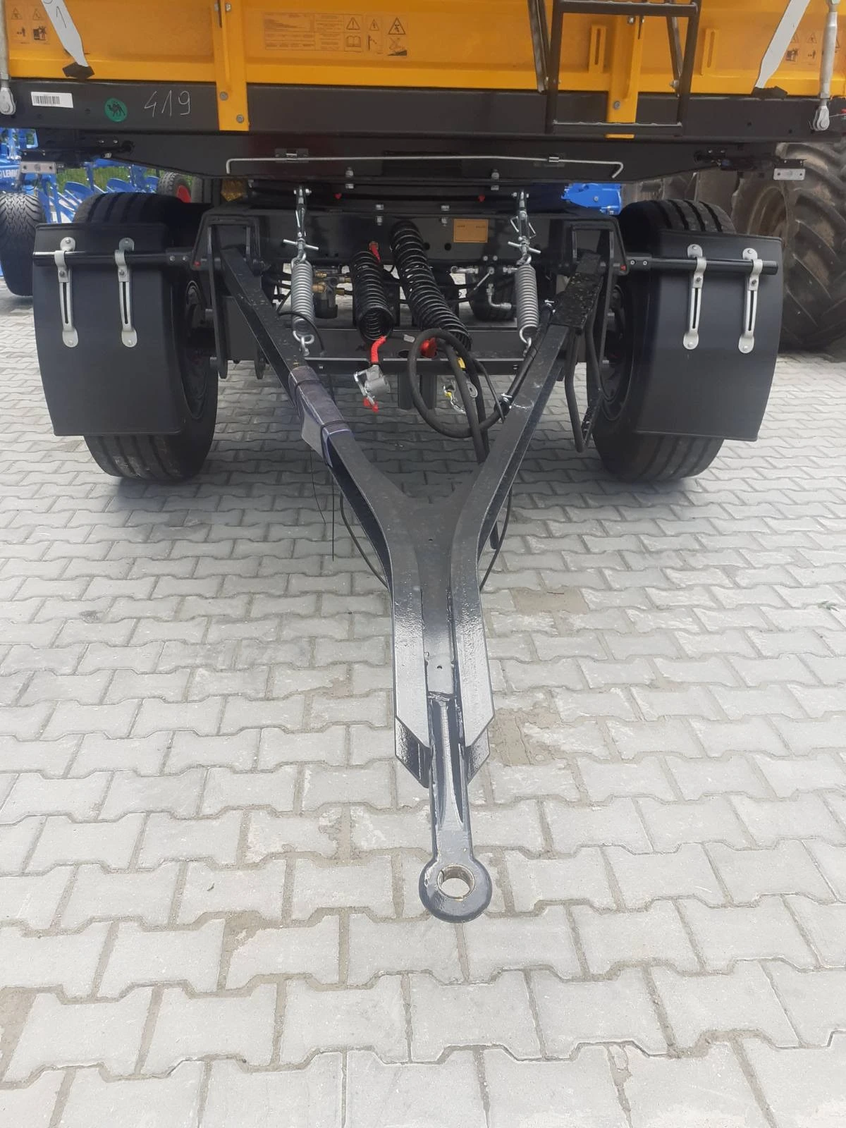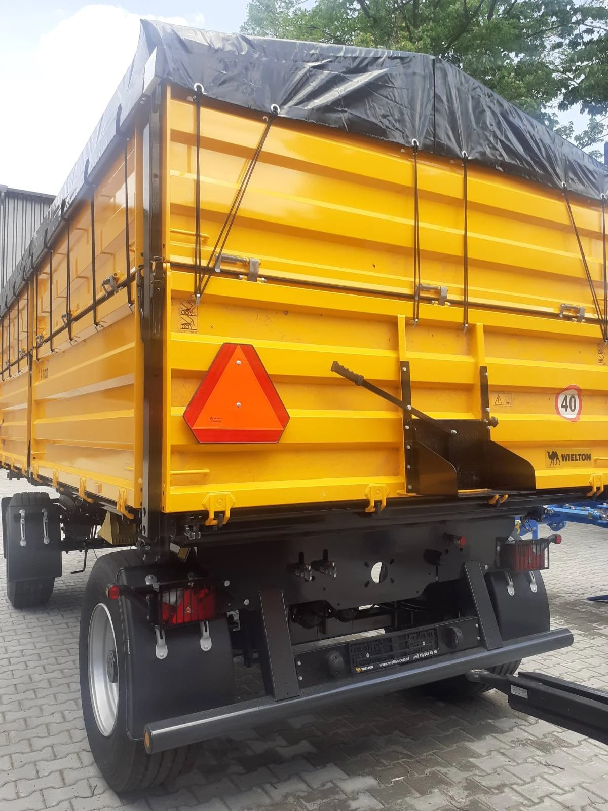 Ремарке WIELTON, модел PRS-2/W14 - тип прикачно, двуосно-предна управляема ос, тристранно разтоварване - вместимост 18 м3 (20 м3) - вместимост 14 тона (16 тона) - височина на бордовете/надставките 800 мм + 600 мм (800 мм + 800 мм) - окачване параболични ресьори - система на разтоварване хидравлично тристранно разтоварване - покривало - платформа Габарити: - дължина 7, 32 м - ширина 2, 55 м - височина 2, 82 м (3, 02 м) - собствена маса приблизително 4 500 кг - максимално допустима скорост 40 км/час - пневматична спирачна система - размер на колелата 385/65R22. 5 - НОВИ