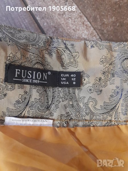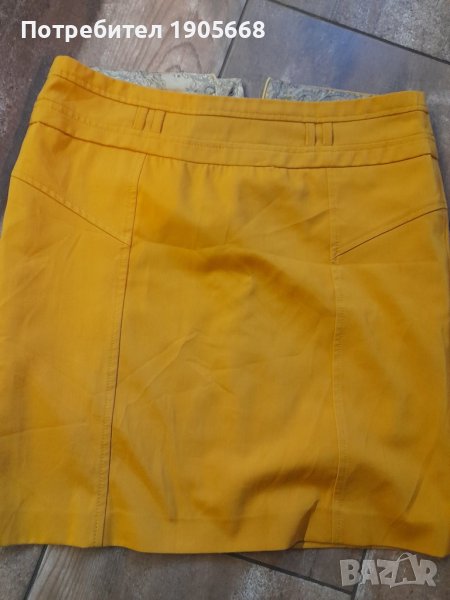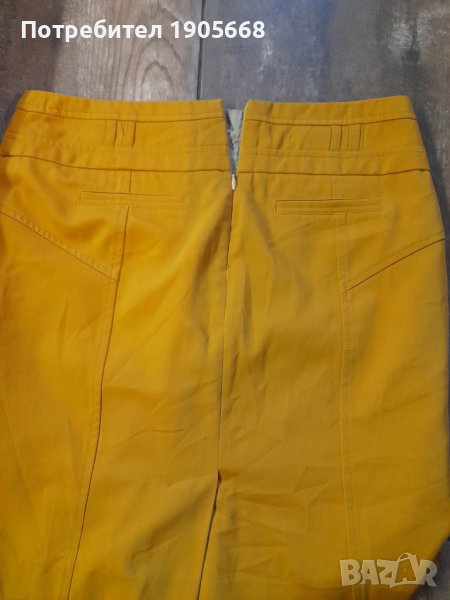 Елегантна дамска пола в красив цвят горчица. Красиво оформена с хастар отдолу. За сезона. № М-Л Размерите едностранно талия - 43-44см. ханш - 50см. дължина - 49см.