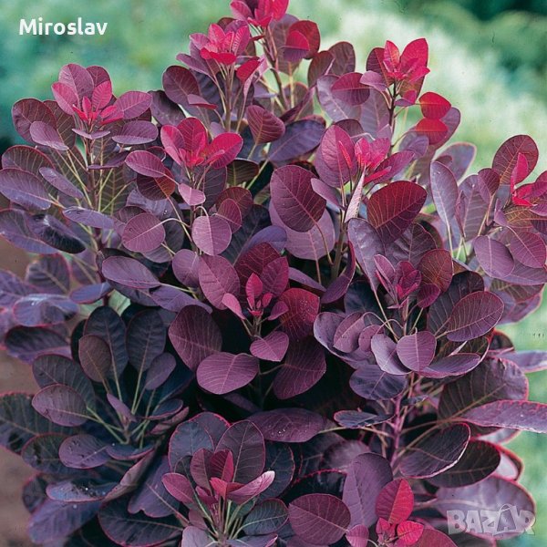 -Сорта на смрадликата с тъмно виолетово-червен цвят на листата. Много декоративен сорт с широко използване в озеленяването.Цъфтежът стартира средата на пролетта/ късна пролет, според климатичните условия. Цветовете са нежни, розови. Червенолистната смрадлика е атрактивна от ранна пролет до късна есен.