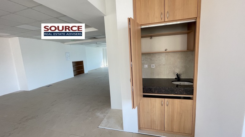2. Разпределение: 1 голямо Open space помещение, кухненски бокс, 2 wc, тераса. Офисът може да бъде изцяло с Open space разпределение или допълнително преграден според изискванията на Наемателя.