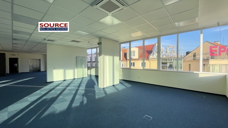 2. Разпределение: 2 големи Open space помещения, кухня, сървърно помещение, 6 wc, тераса. Офисът може да бъде допълнително преграден според изискванията на Наемателя.