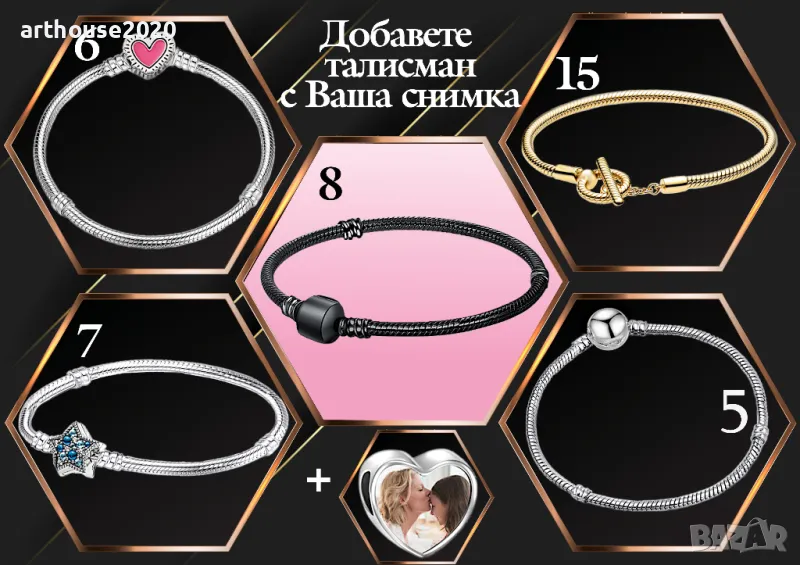 Гривни и ключодържатели тип Пандора,с Ваша снимка и атрактивни талисмани