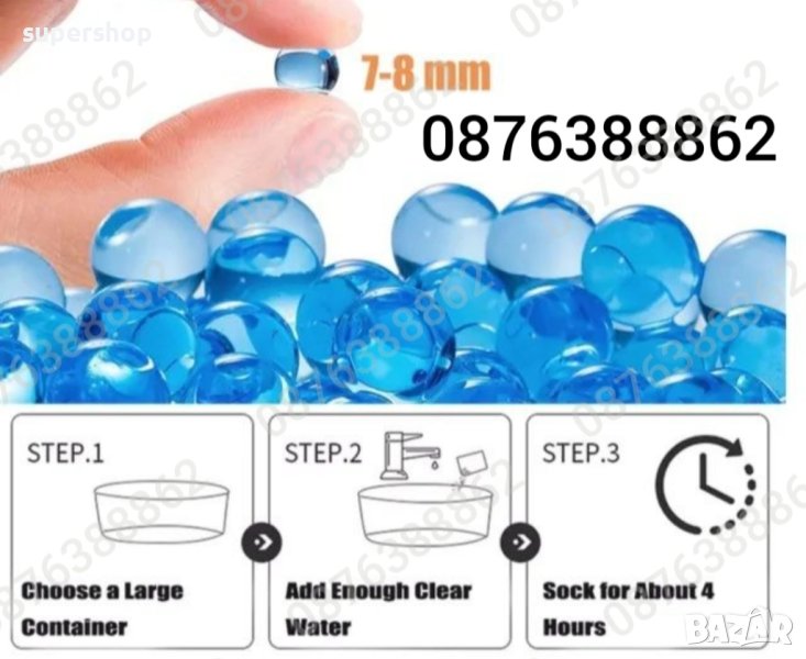 За едно зареждане е достатъчна половин чаена лъжичка, силиконови топчета които се накисват с вода за 4-6 часа, за което време размерът им достига 6-8 мм.( колкото грахово зърно).