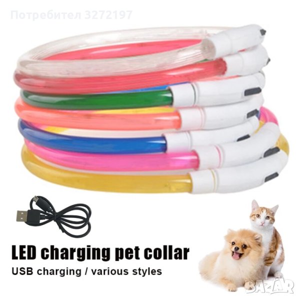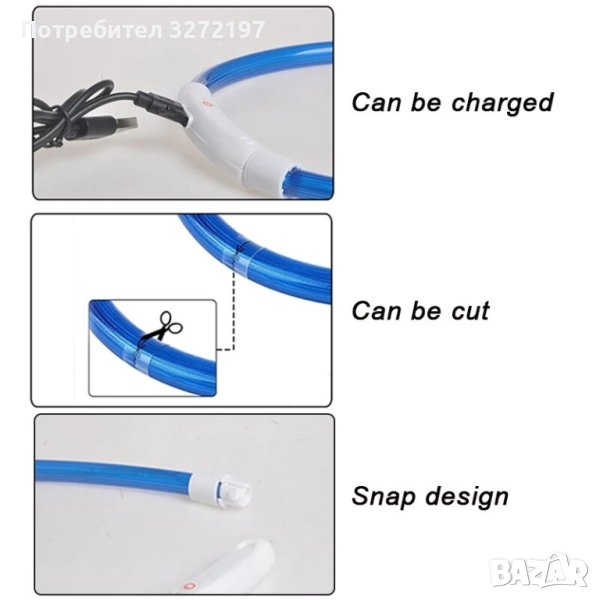 Led USB нашийник за кучета ,налични 2 цвята син и червен,дължината може да се корегира от Вас