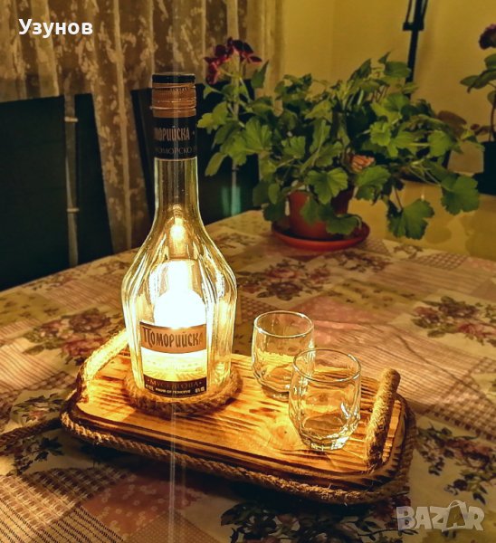 Ръчно изработена лампа за механа или барбекю от дърво, въже и стъклена бутилка и чашки., снимка 1 - Настолни лампи - 40978668 Ръчно изработена лампа за механа или барбекю от дърво, въже и стъклена бутилка и чашки., снимка 2 - Настолни лампи - 40978668 Ръчно изработена лампа за механа или барбекю от дърво, въже и стъклена бутилка и чашки., снимка 3 - Настолни лампи - 40978668 Ръчно изработена лампа за механа или барбекю от дърво, въже и стъклена бутилка и чашки., снимка 4 - Настолни лампи - 40978668 1/4