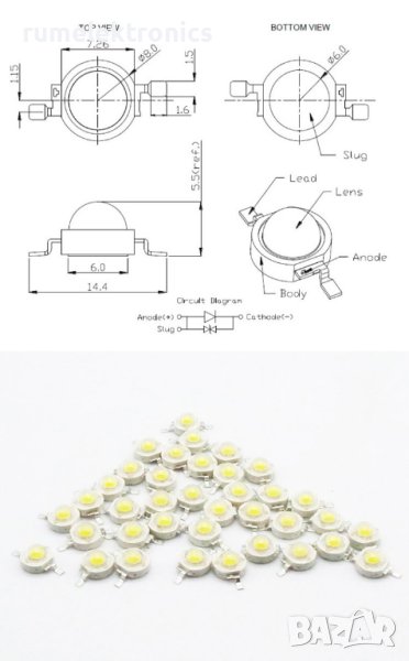Студено бели светодиоди 3V 1W, снимка 1 - Друга електроника - 40979635 Студено бели светодиоди 3V 1W, снимка 2 - Друга електроника - 40979635 1/2