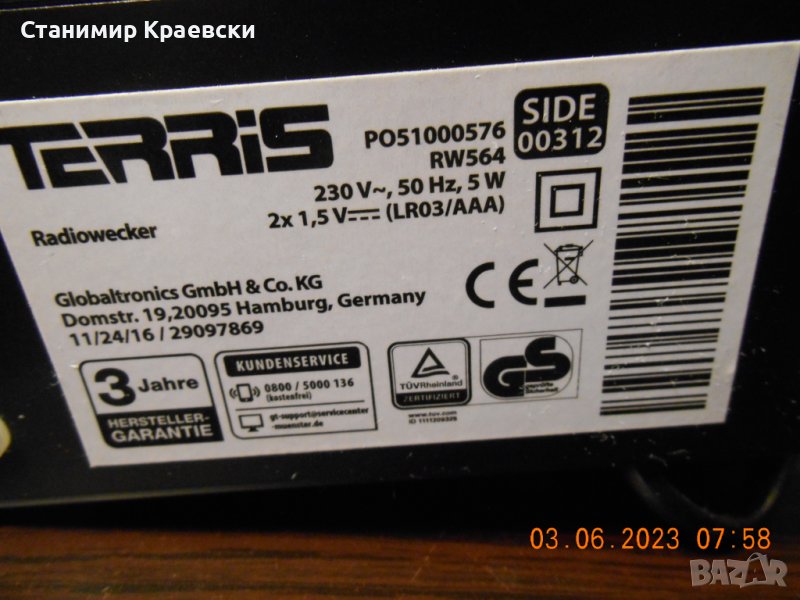 Terris WR564 alarm clock radio, снимка 1 - Други - 40981728 Terris WR564 alarm clock radio, снимка 2 - Други - 40981728 Terris WR564 alarm clock radio, снимка 3 - Други - 40981728 Terris WR564 alarm clock radio, снимка 4 - Други - 40981728 Terris WR564 alarm clock radio, снимка 5 - Други - 40981728 Terris WR564 alarm clock radio, снимка 6 - Други - 40981728 Terris WR564 alarm clock radio, снимка 7 - Други - 40981728 Terris WR564 alarm clock radio, снимка 8 - Други - 40981728 Terris WR564 alarm clock radio, снимка 9 - Други - 40981728 Terris WR564 alarm clock radio, снимка 10 - Други - 40981728 1/10