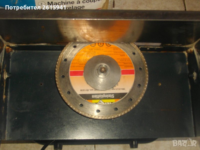 Производство - немско оригинално. Произовдител - HEKA Werkzeuge GmbH.Машината е за сухо и моркро рязане на плочи/плочки всякакви без мрамор - фаянс, теракот, гранитогрес, керамика, камъни, гнайс, тротоарни бетонови плочи и др. с дебелина до 33-35 мм. За дискове размер ф 180 мм х 22,2 мм диамантени. Машинате с поставен оригинален немски диск диамантина - почти нов. Налична вана оригинална на машината за вода при мокро рязане. Ъгъл рязане 0-45 градуса. Мощност на мотора - 600 вата, скорост - 2950 об/мин. Метална масивна основа и корпус на машината- Метален плот с размери 390 х 400 мм. Височина на машината с диска - 220 мм.