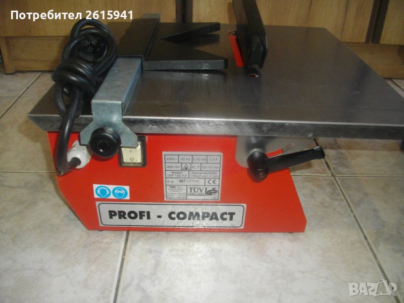 Цена на червена професионална италианска ел.машина рязане плочки, с наличен оригинален паралел рязане ширина и ъглово рязане - 0,4 KW /2,5A - PROFI-COMPACT - 299 лв НЕ Е НАЛИЧНА.