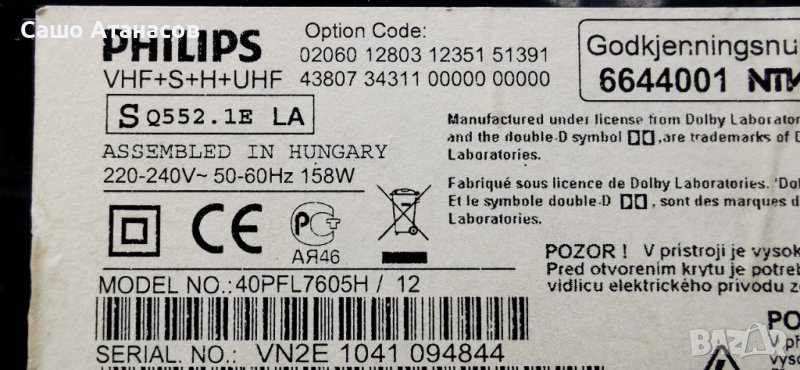 PHILIPS 40PFL7605H/12 (продава се и на модули) ,FSP175-4FS01 ,3104 313 63643 ,CPWBX RUNTK 4323TP ZT