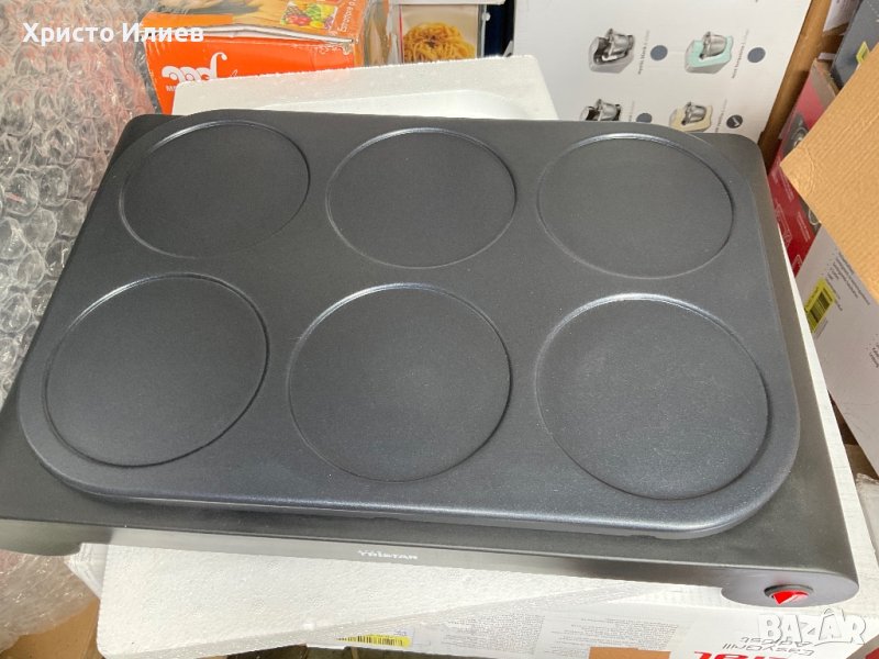 Уредът е използван и има следи от употреба по няколко от тиганите. По плочата няма никакви забелелжки. Работи отлично. В оригинална опаковка.