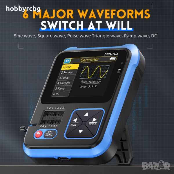 - Генераторът на сигнали има общо 6 вълнови форми за избор, с регулируема честота и амплитуда.