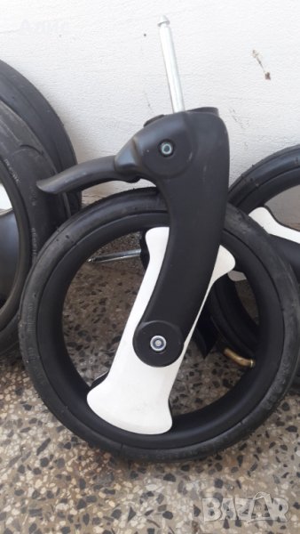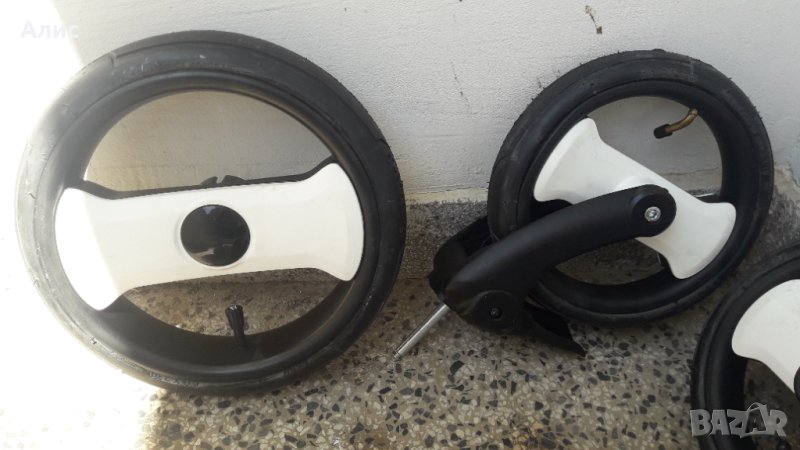 Комплект нови колела за шезлонг,надуваеми ,вътрешна и външна гума,метални лагери.Диаметър на колелото: голямо 29 см. външно с гумата и ширина 5,5 см.-диаметър на малкото 24 см. външно с гумата и ширина 4,2 см.Другите размери са на снимките. Малките колела са със вилка.
