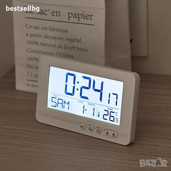 Разполагаме с перфектният цифров будилник, който ще превърне събуждането в приятно изживяване. Снабден с фоново осветление на LCD дисплея, той предоставя ясна и удобна визуализация на времето (в 12-часов или 24-часов формат), датата, температурата и алармата.
