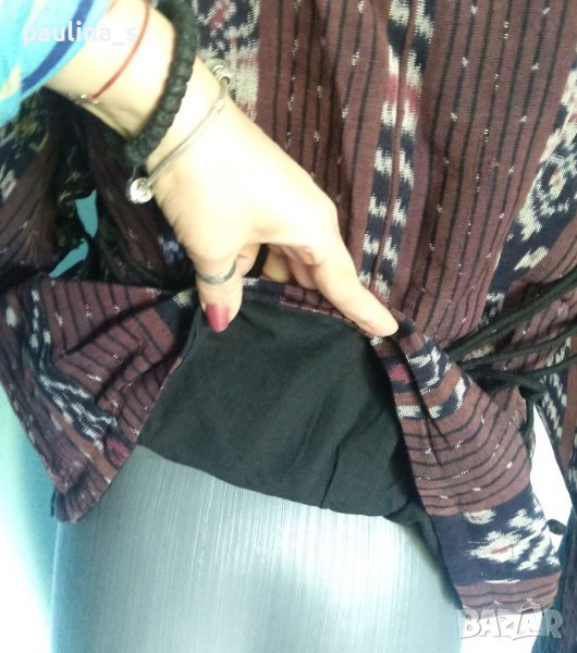 1️⃣. Едно уникално яке или сако в етно стил с копчета от жадеит(яспис - само едното копче струва 25-30лв като камък), 100% памучно зебло за лицето и много фин памук за хастар и декорации. Закопчаването е обратно, но не пречи да се носи така или да се обърне. раменете са падащи, а ръкавите са с декорации. Талията се регулира отзад с шнур, като корсет. Цветовата комбинация и цялото звучене на дрехата е умопомрачително. Уникат!