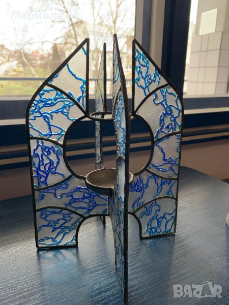 Свещник от стъкло, ръчна изработка, снимка 1 - Декорация за дома - 41000875 Свещник от стъкло, ръчна изработка, снимка 2 - Декорация за дома - 41000875 1/2