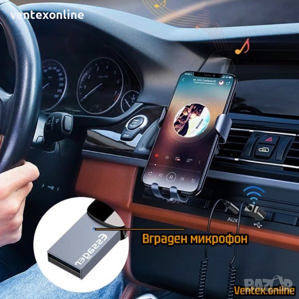 Безжичен Bluetooth 5.0 аудио адаптер за автомобил блутут AUX HiFi