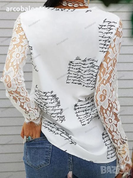Ликвидация! Дамска дантелена блуза с V-образно деколте и дълги ръкави - Доставка 24 часа