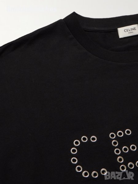 CELINE BLACK STUDDED EYELET LOGO PRINT Мъжка Тениска