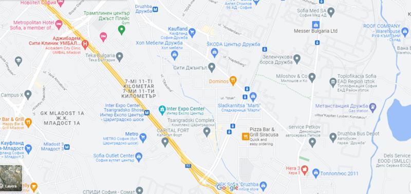 * Quiet street with asphalt, near Kaufland, Fantastiko, Metro, Technomarket, Outlet Center, Sport Depot and other chain stores, boutique outlets, Inter Expo Center, shopping center The Mall, metro station, public transport stops, schools,