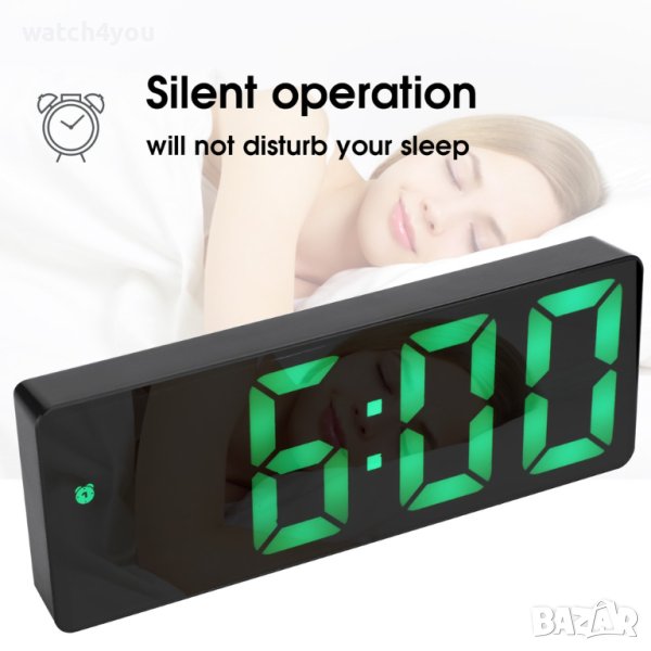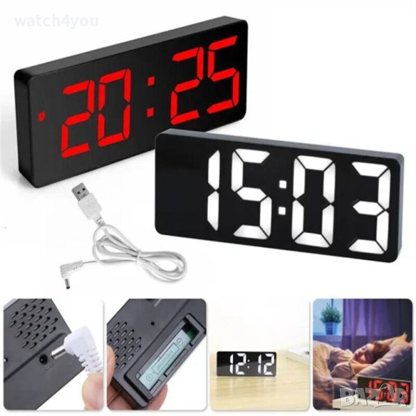 LED часовник с осветление, огледален дисплей и големи цифрите.