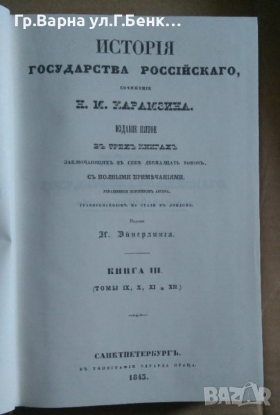 История Государства Росийского Н,М.Карамзин Фототипно в 12 тома събрани в 3 книги плюс Ключ към тях -120лв