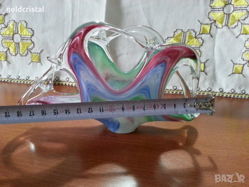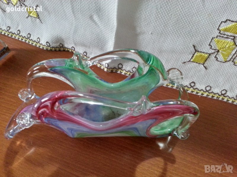 Стъклен салфетник тип Мурано кристално стъкло ръчна изработка ретро арт декор винтидж колекция стари антикварни предмети обзавеждане за дома и семейството подходящ за подарък за ценители и колекционери