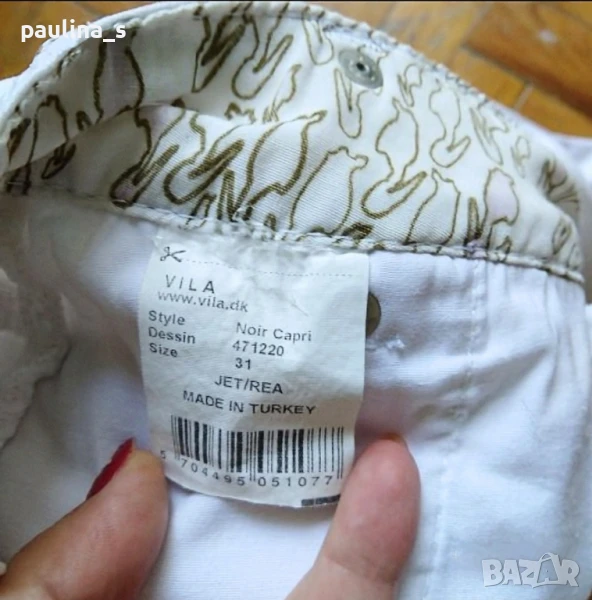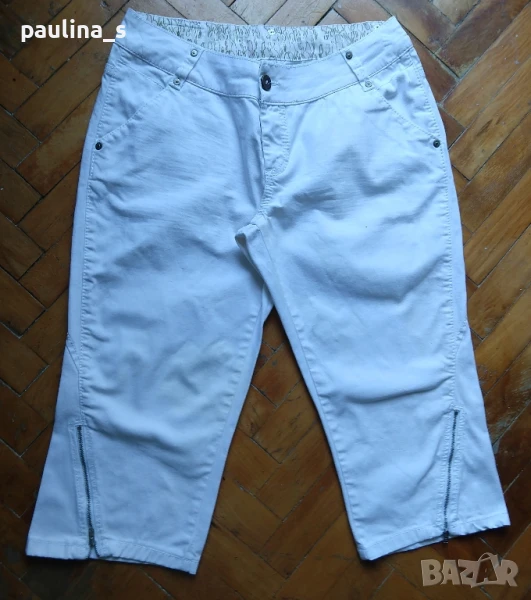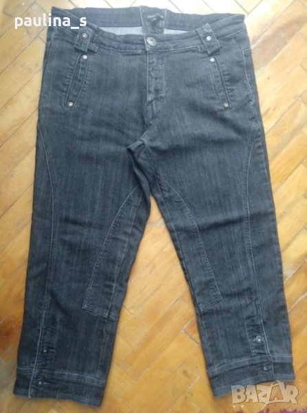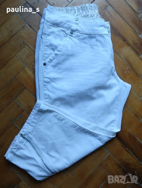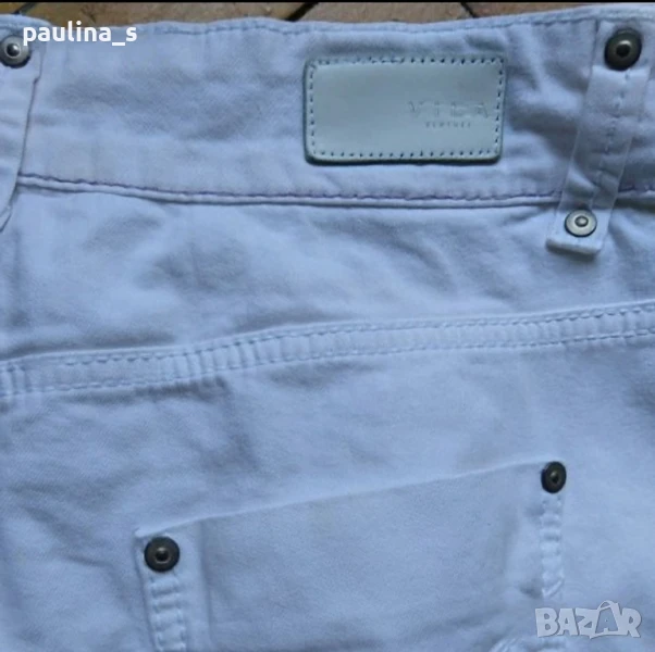 2️⃣. L / 2XL - "Vila". Цената е крайна 24,99лв / 12,5 евро. Дизайнерски дънкови бермуди с коси джобове и ципове на крачолите и емблема от естествена кожа, брандирани копче и кабси. Има леко преливане в цвета, а гънките около свивките на краката са фабрични. Материята е еластична и покрива няколко размера до 44EU.