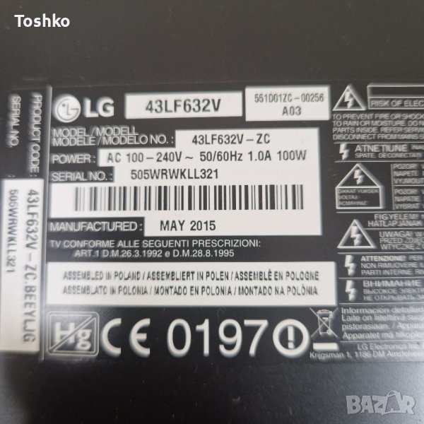 Стойка за ТВ LG 43LF632V → Обява 41021795
