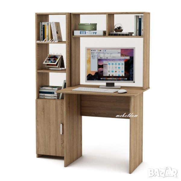 Бюро с надстройка и етажерка с плавна врата(код-0904) цветове-Дъб Сонома+Бяло,Венге+Дъб,ВЕНГЕ,Млечен дъб,ОРЕХ,БУК,Дъб Сонома,Светло сиво или БЯЛО