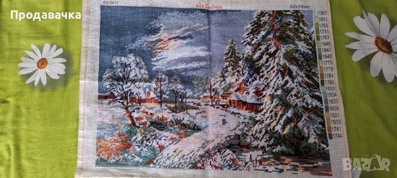 ( Лунна Зима ) шит с вилерови конци, размери: 52/39см.