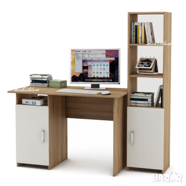 Бюро 110см. с врата и етажерка с плавни врата(код-0907) цветове-Дъб Сонома+Бяло,Венге+Дъб,ВЕНГЕ,Млечен дъб,ОРЕХ,БУК,Дъб Сонома,Светло сиво или БЯЛО
