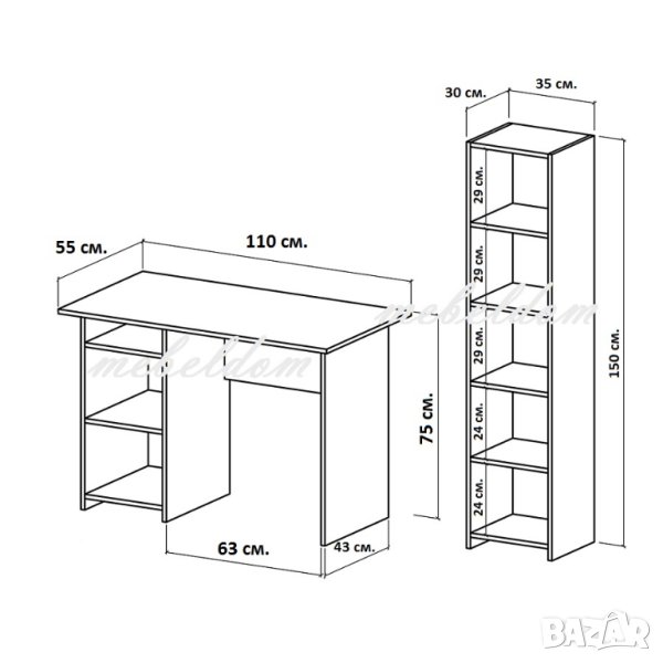 Бюро 110см. с врата и етажерка с плавни врата(код-0907)