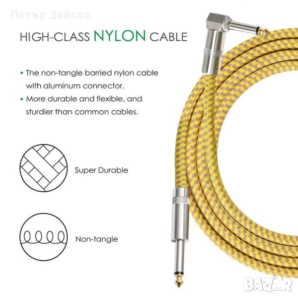 инструментален кабел е 3 м (10 фута), идеален за свързване на повечето акустични ретро електрически бас клавиатури с усилватели, процесори за ефекти или DI кутии.