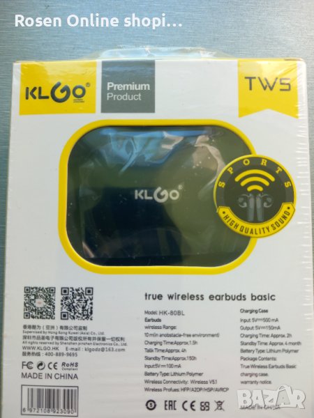 Модел 2024 г. Безжични Bluetooth Слушалки геймърски KLGO TWS Premium за телефон, смартфон, музика, разговори и др.
