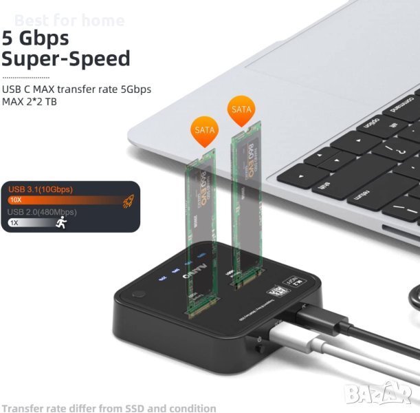 ВИСОКА СКОРОСТ: USB 3.0 Gen1 поддържа до 5Gbps. Външната докинг станция за твърд диск е оборудвана с USB C към C кабел, A към C кабел и 5V-3A захранващ адаптер.